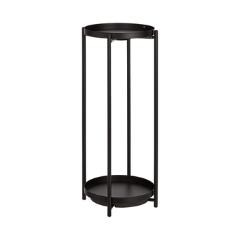 भंडारण और प्रदर्शन के लिए बुनियादी दो-स्तरीय धातु संयंत्र काले रंग में खड़ा है